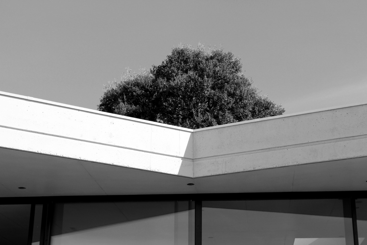 Maison située dans un lotissement pris dans un tissu de constructions dense et pas très heureuses. Le terrain présente une forte déclivité, le sens de la pente est perpendiculaire aux vues à privilégiées. Le plan oblique répond au programme tout en s’adaptant au site, à la fois d’un point de vue topographique - la maison est encaissée dans la terre sur 3 de ses cotés et largement ouverte sur l’avant avec ses pans obliques cadrant les vues et masquant l’environnement bâti.