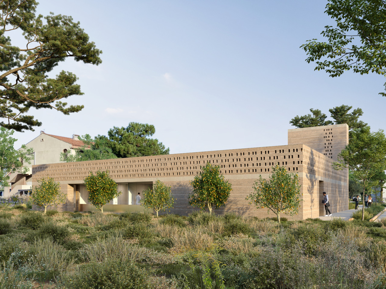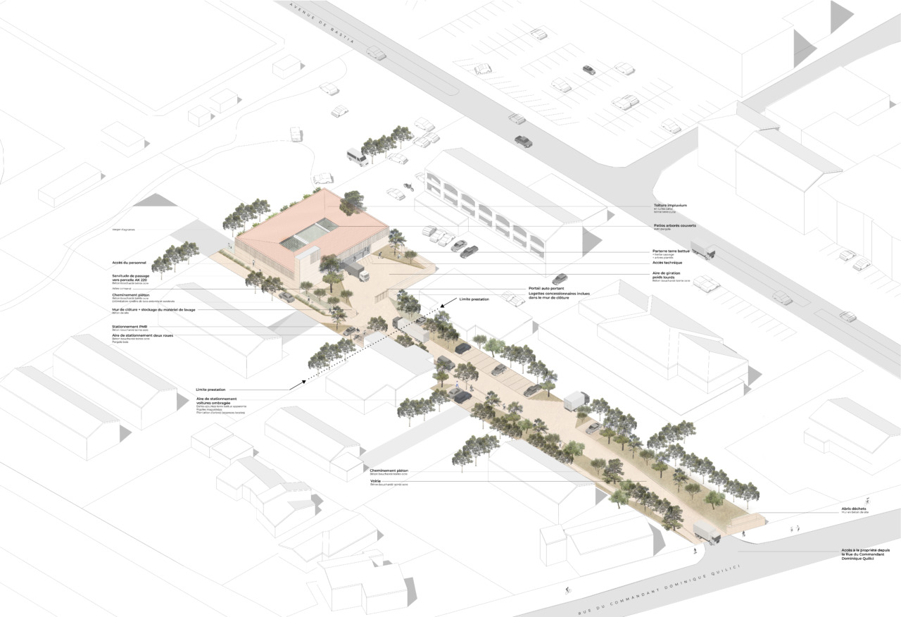 Porto-Vecchio est une commune dynamique, grâce à son site exceptionnel elle attire un nombre croissant d’habitants et de résidents, portée par une activité touristique et un cadre de vie remarquable. La commune a souhaité améliorer l’offre des repas pour les plus jeunes et leurs aînés, grâce à un outil de production des repas situé au contact des usagers. Le projet témoigne par son principe constructif d’un ancrage local, mais aussi par sa conception intérieure et son ergonomie de quelque chose de contemporain et flexible à l’évolution des besoins futurs, sur un site particulièrement contraint.