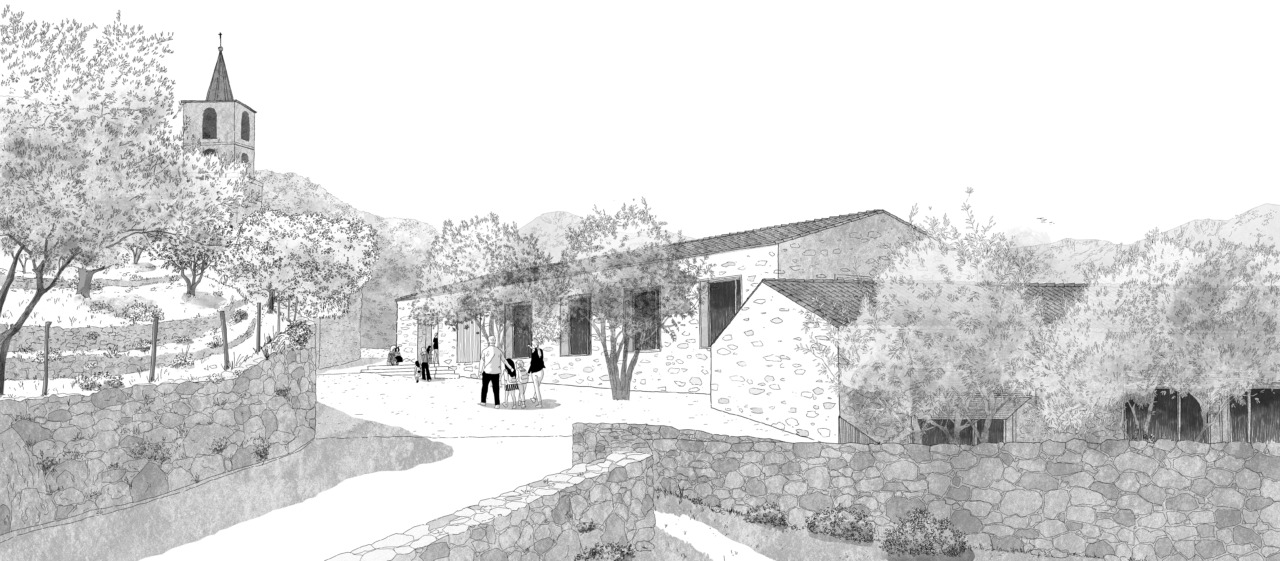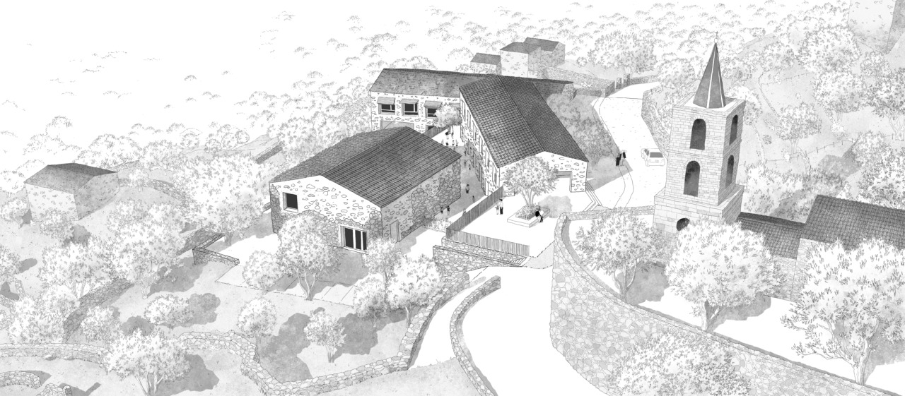 La parcelle allouée au projet est le témoin vivant des principales activités agricoles vivrières basées sur la polyculture, potagère, céréalière, oliveraie et l’élevage, ayant modelé le paysage (terrasses délimitées de murs de soutènement de pierres sèches granitiques, séchoirs à châtaignes, granges, fours à pain, enclos, fontaines, bassins et rigoles d’irrigation, etc...)