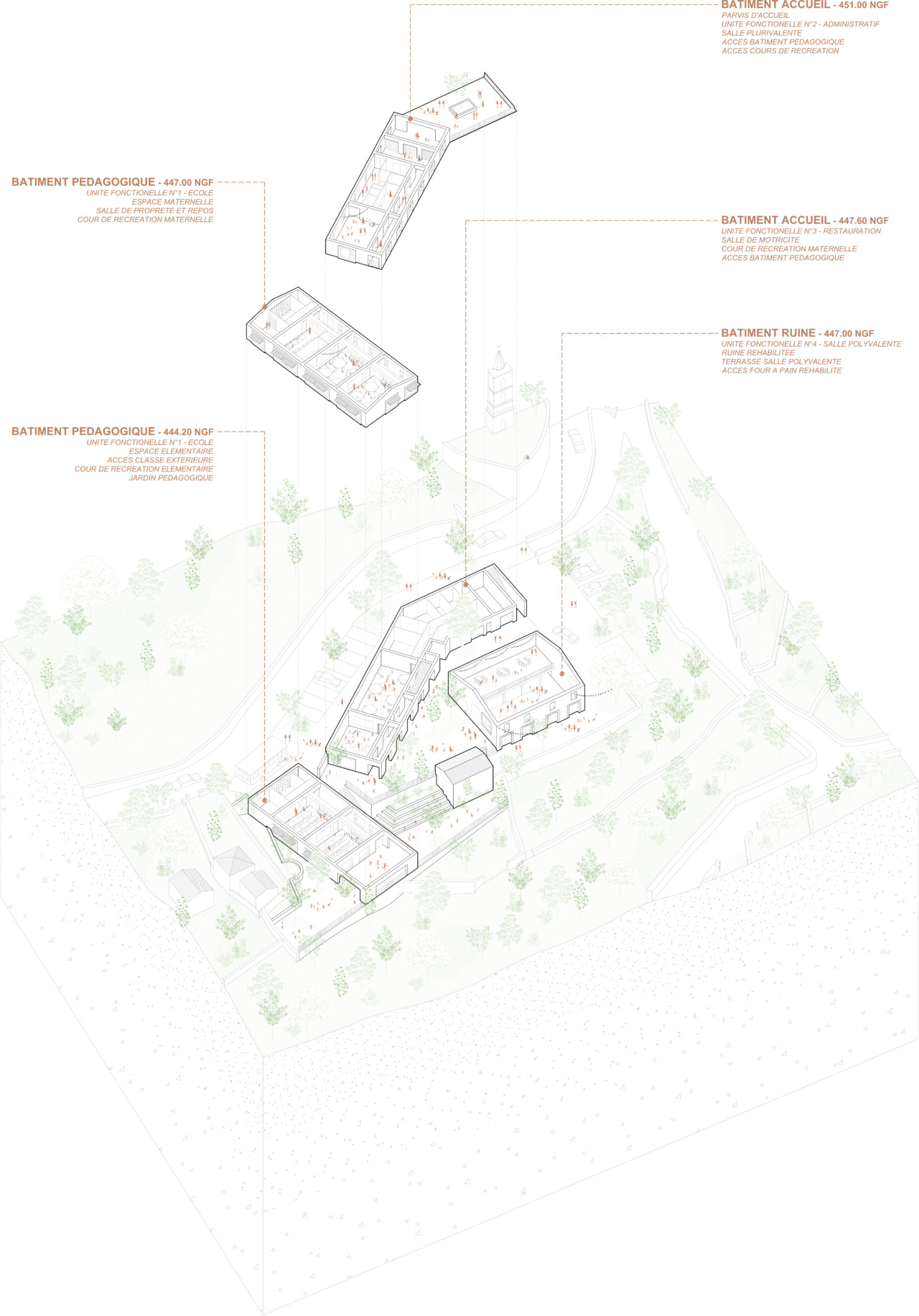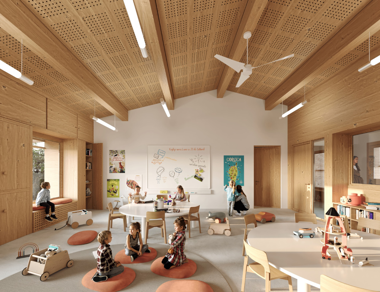 La notion de déambulation pour les enfants est abordée sous un angle pédagogique en la reliant à plusieurs dimensions : l’apprentissage sensoriel, le développement moteur, la structuration de l’espace et du temps, ainsi que la créativité. Une salle de classe apaisée et naturellement ventilée. Les salles de classe bénéficient d’un bon éclairage naturel et d’une ventilation traversante assurant un confort thermique sans recours à la climatisation. L’ambiance est calme, avec des matériaux sobres et naturels qui contribuent à un environnement apaisant, propice à l’apprentissage et à la sérénité des enfants.